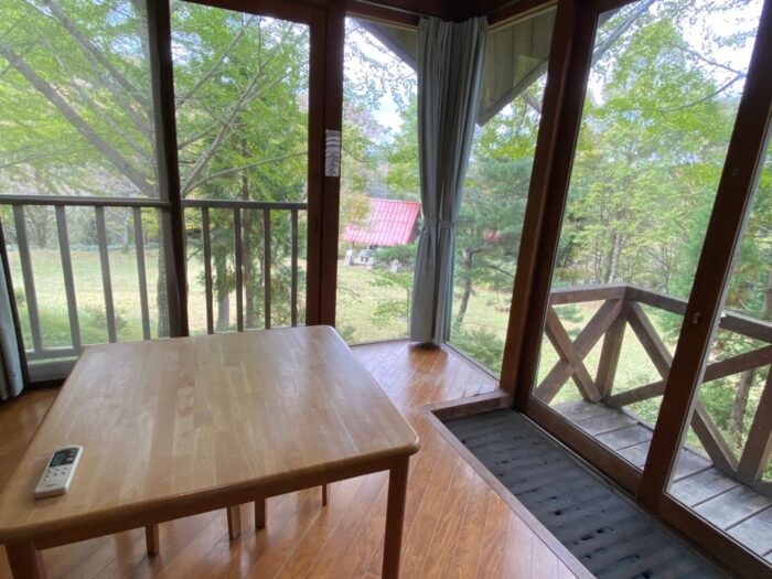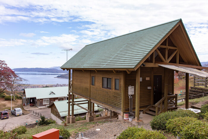 中でも公園の高台に位置するパノラマコテージは、バルコニーから一字観を眺められると人気の建物。全5棟ありそれぞれに「はしだて」「一字観」「つつじ」「かえで」「あじさい」の名前がついています。