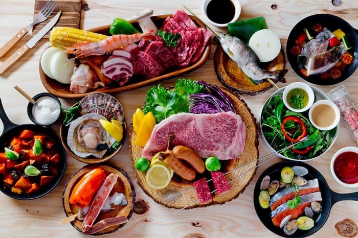 さらに、手ぶらBBQプランを利用すれば、コテージ横のスペースで豪華なBBQもできちゃいます。メニューには海鮮や特選但馬牛などが食べられるプランも豊富にそろっているので、お好みのプランを選んでみてくださいね(写真はイメージ)。