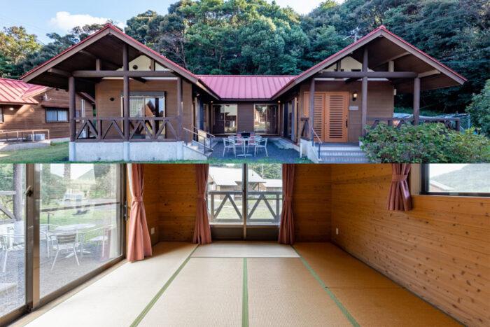 (定員大人6人・【利用料】1棟1万2000円+【加算料】中学生以上1700円、3歳〜小学生600円、【公園維持協力金】中学生以上300円、3歳〜小学生200円/午後3時IN~翌日午前10時OUT)
