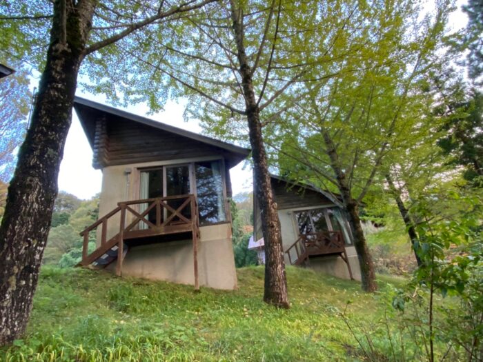京丹後市にある「森林公園スイス村」では、自然に囲まれたバンガローで泊まることができます。