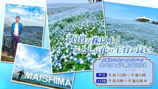 そんな大型連休のお出かけ先として、蓬莱さんが「今年は特におすすめ!」と太鼓判を押すのが、大阪・舞洲で開催中の「大阪まいしまシーサイドパーク ネモフィラ祭り2026」です。