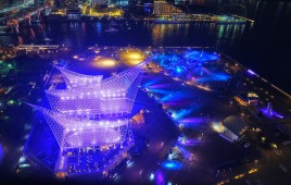 可愛らしい姿ですが、なんと高さ4メートル! 時間になるとオーロラビームが出る仕掛けで、辺りを幻想的な雰囲気で包み込みます。