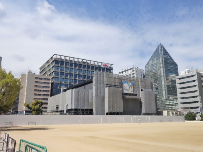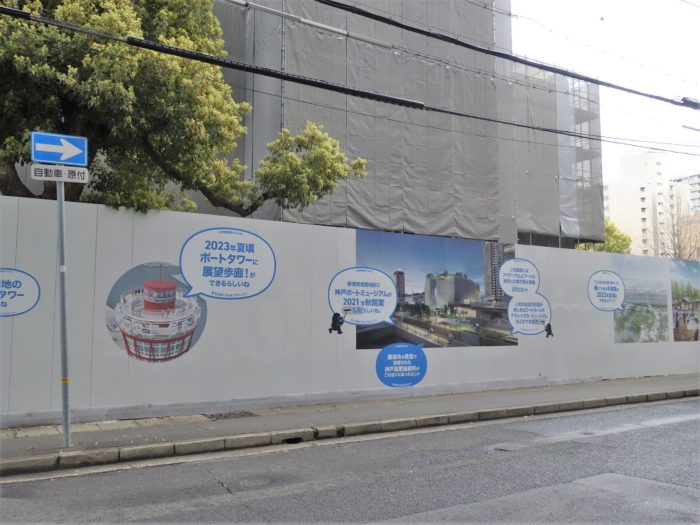 建設現場まわりの「仮囲い」には、三宮~ウォーターフロントエリアなど「都心再整備」の情報がいろいろ書かれていました。