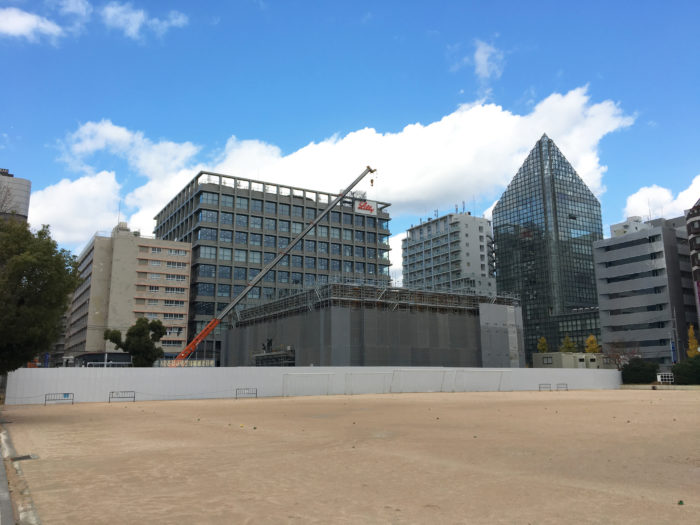 体育館の西側(クレーンが停まっているところ)は、「芝生エリア」になる予定です。