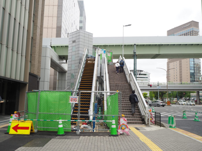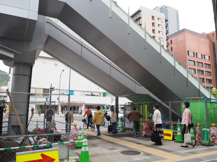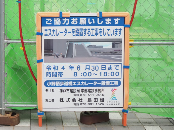 三宮駅前の「歩道橋」に、ついに「エスカレーター」が出現。暑くなる前には利用できそう