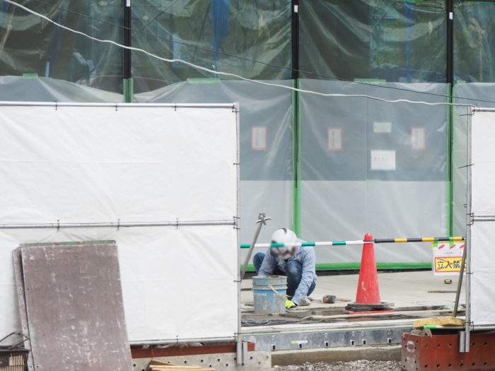 4月中旬には1階玄関前の「舗装」も始まってました。いよいよ完成が近づいてる感じ。