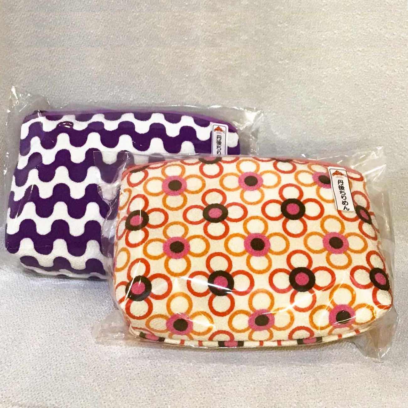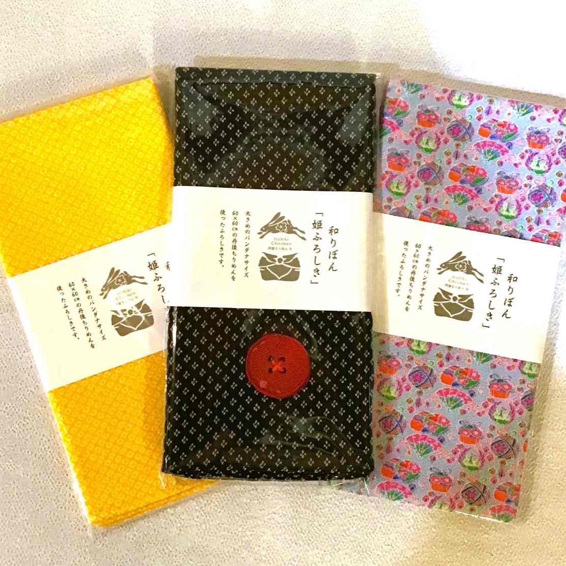 地元の織物業者「一色テキスタイル」が作る、ちりめん織の風合いを生かした商品です。左の風呂敷ははウォシャブルなので、ひざ掛けにしても。右は鮮やかな色合いと、コロンとしたかわいらしいフォルムが人気のポーチ。
