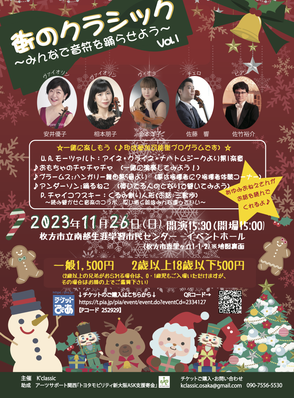 12/17 9:40~くずは生涯学習センターにてリトミックdeクリスマスをします。