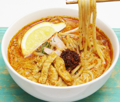 ラクサはシンガポールの隠れ名物料理で、ココナッツミルクと魚介の出汁、スパイスが絶妙に合わさったピリ辛スープがクセになる麺料理です。